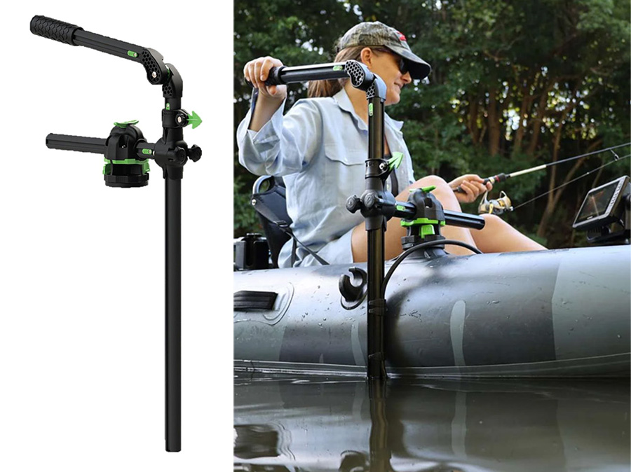 HEXX Live Pole 30 mit dem HEXX Ribport, der speziellen Klebebasis für Schlauchboote. Damit montierst du deinen Livesonar-Geber (z.B. Humminbird MEGA LIVE) sicher, stabil und werkzeuglos an jedem Schlauchkörper
